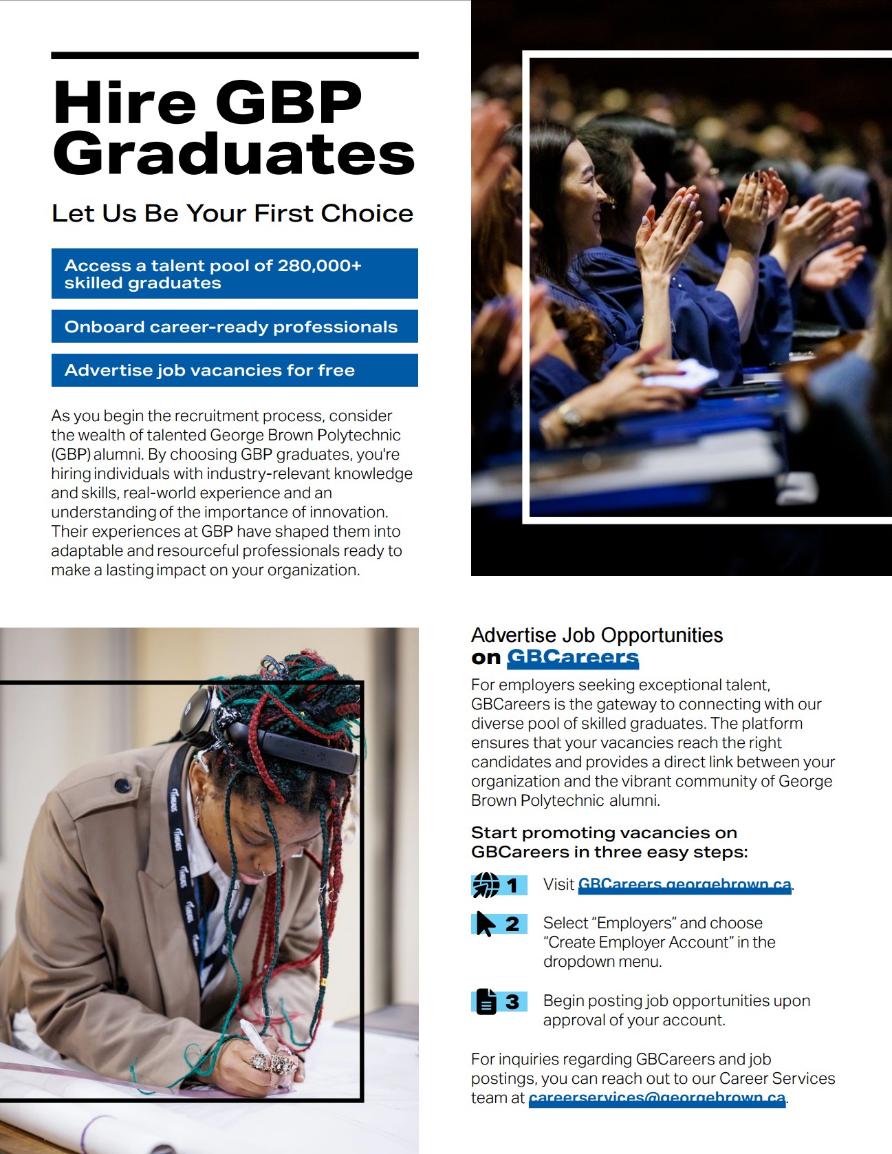 Contact us at email: alumni@georgebrown.ca