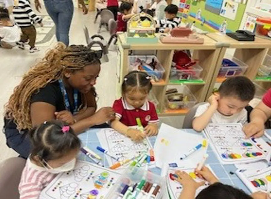 The school has a nurse and an extra staff member in each classroom to assist the educators. Additionally, many enriching experiences are offered, such as taekwondo and baking lessons. Apart from the regular classrooms, the school has special rooms like a Lego room and a kitchen used by the children for baking.