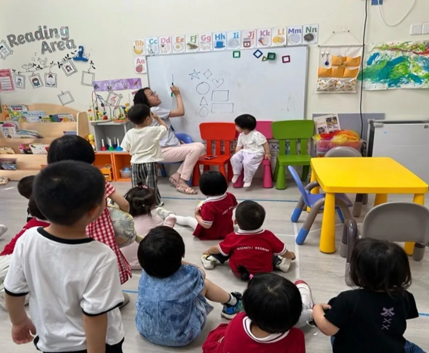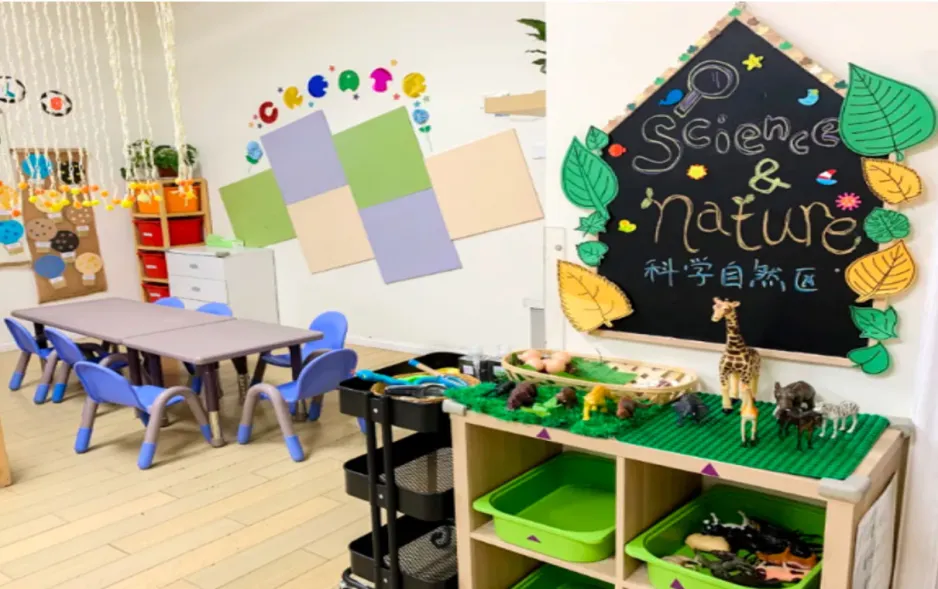 The school operates from 8:30 am to 4:15 pm on weekdays, catering to approximately 150 children aged 18 months to 6 years old. The classrooms are divided into Pre-Nursery, Nursery, Junior Kindergarten, and Senior Kindergarten levels, each accommodating around 20 children. The curriculum is bilingual and play-based, with a Mandarin teacher, an English teacher, and a nursery governess managing each classroom.