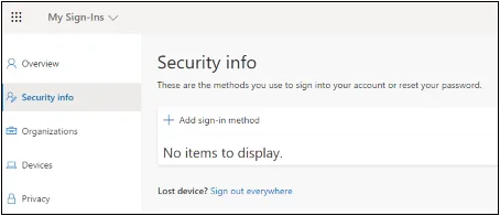 - Select + Add sign-in method:
