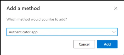 - Select Authenticator app and then click Add:
