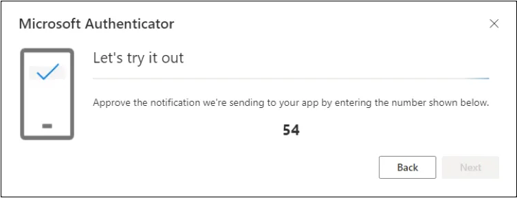 - Approve the notification in the Authenticator app by entering the number shown on your computer, and then select Next.